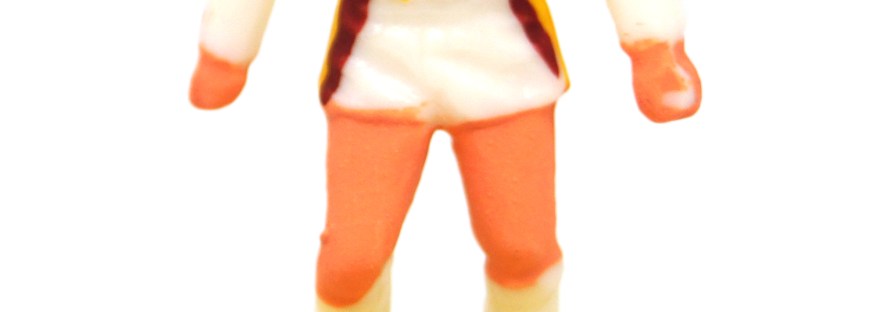 By the 1980s, production economies forced Subbuteo players to be moulded as flimsy plastic figures that made those of the 1960s and 1970s seem heavyweight by comparison. That said, even those were rarely able to withstand the crunch of being knelt on. However, in the 1950s the figures were even flimsier, printed on celluloid and affixed to plastic bases.