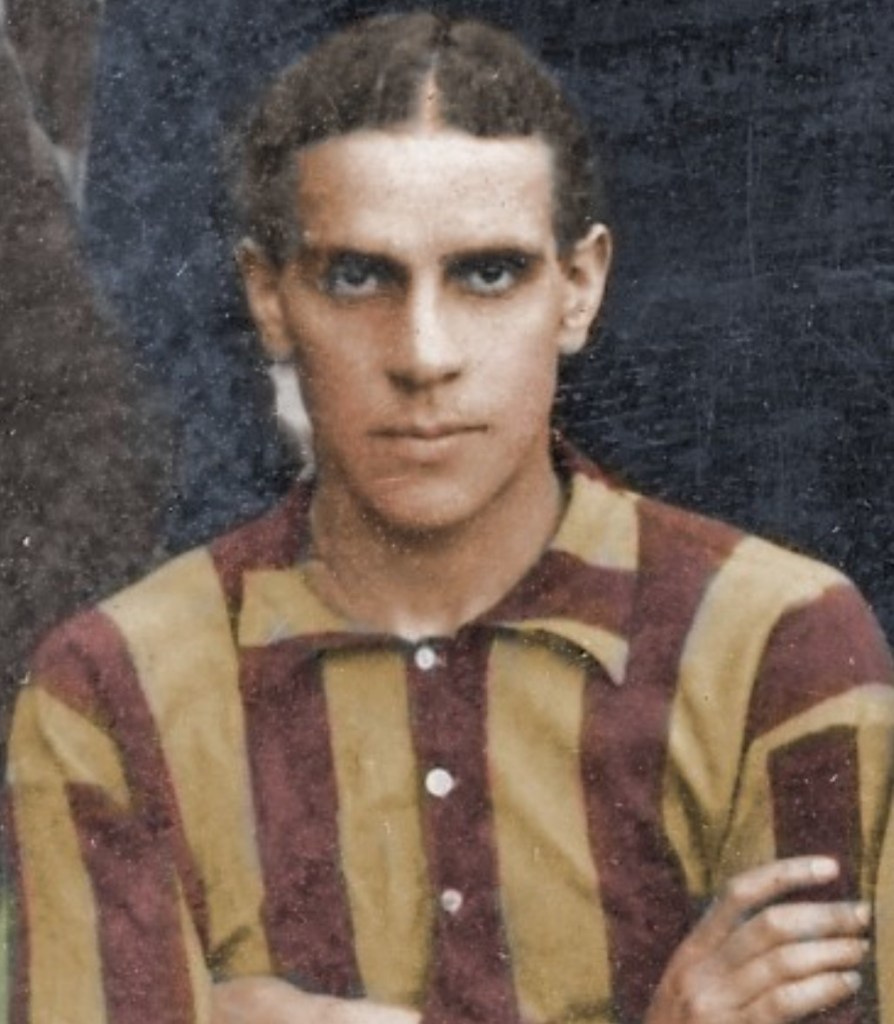 Nevertheless it was William Clarke (below – image colourised by George Chilvers) who was the first black professional footballer in Bradford, playing 92 league games for Bradford City between 1905-08 and Clarke was the scorer of the club’s first goal in Division One in September, 1908.