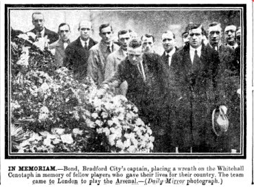 Whilst it is important to remember the sacrifice of the club’s players we should also recognise that the so-called Great War of 1914-18 impacted greatly on the football club. Indeed, what tends to be overlooked is that numerous supporters of the club were also among the war dead and injured. In turn the war touched upon the families of Bradfordians. In the aftermath of the war nothing was quite the same for either the city of Bradford or Bradford City. Aside from the personal tragedies, the city had lost its German community and the finances of Bradford City AFC were depleted to the extent that the club lost its first division status in 1922.