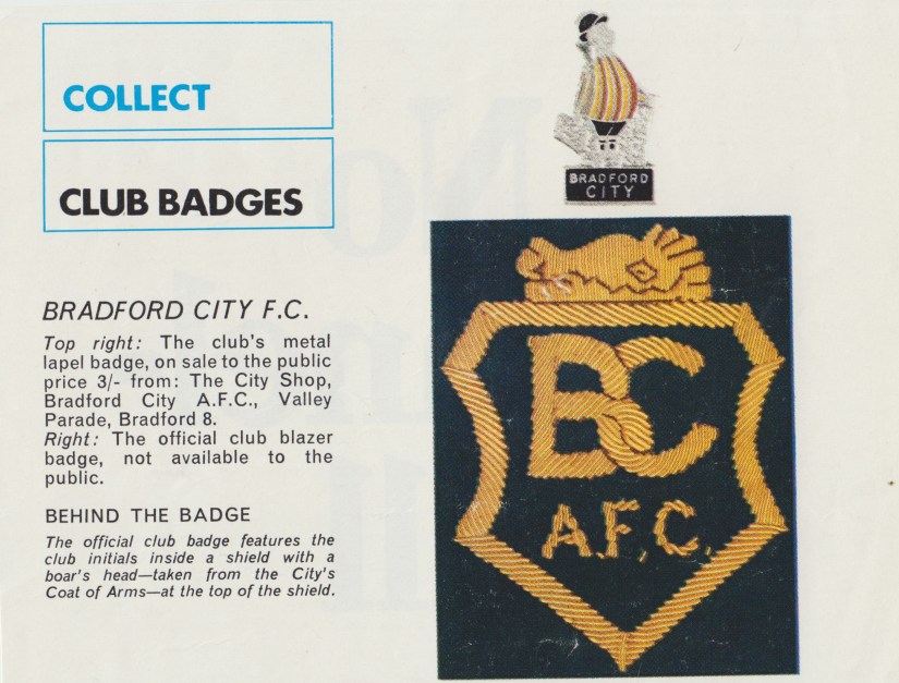 The principal identities have been the civic boar and the bantams nickname and you can discover the origins of both. You can also discover the various monogram badges that have been used.