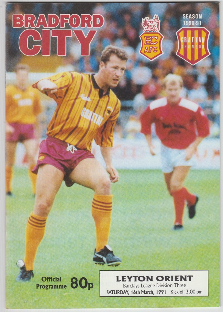 Our highest victory, 4-0 was achieved in March, 1991 (the programme of which is featured). This was the third home game in succession that the Bantams had scored four goals against the O’s with the two preceding meetings at Valley Parade in February, 1985 and January, 1984 both ending 4-1. The game in 1984 is remembered as the ninth game in a run of ten successive victories that saw the club rise from the relegation zone in meteoric fashion. The programme for the game in 1985 – the season when Bradford City finished as champions of Division Three – is also featured. When the clubs had met the previous September in London there was little indication that City might top the division after a disappointing 0-1 reverse.