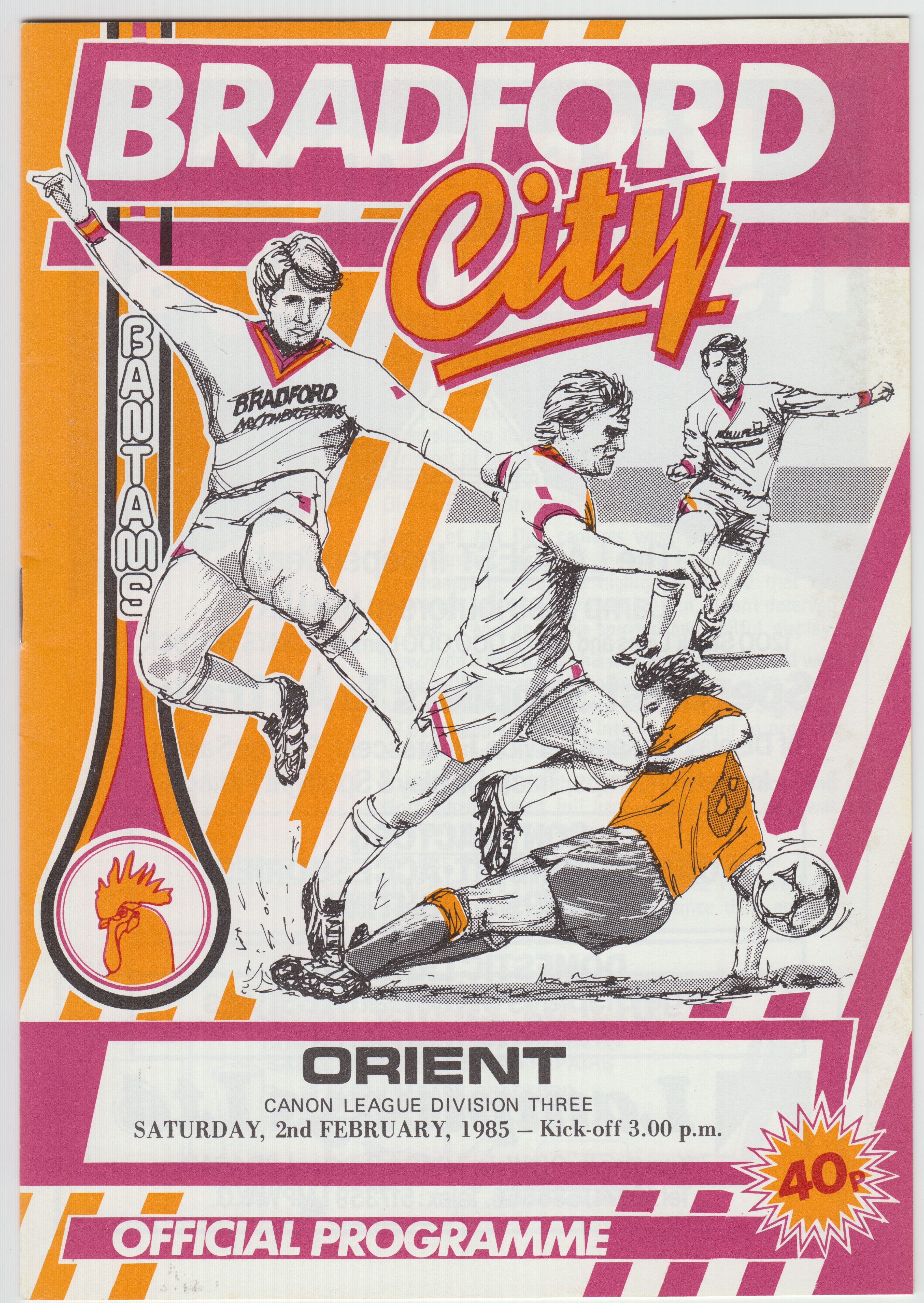 Football programmes have traditionally been a staple of the match day experience, historically a collectable for many supporters. At Valley Parade, programmes have been produced for first-team fixtures since 1909 and the sale of single sheet team cards dates back even further. This season the match day magazine celebrates the rich heritage of old programmes from earlier years and today’s issue is based on the design from 1969/70 – the last visit of Barrow AFootball programmes have traditionally been a staple of the match day experience, historically a collectable for many supporters. At Valley Parade, programmes have been produced for first-team fixtures since 1909 and the sale of single sheet team cards dates back even further. This season the match day magazine celebrates the rich heritage of old programmes from earlier years and today’s issue is based on the design from 1984/1985 when we played Orient during our Division Three Championship winning season.